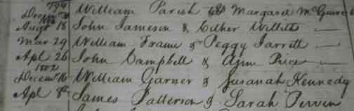 William Frame and Peggy Jarrett Marriage Record, 1803