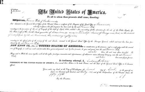 Francis Peek Land Patent, 2 April 1831 Darke County, Ohio, Certificate no. 2000 U.S. General Land Office, Bureau of Land Management Washington D.C.